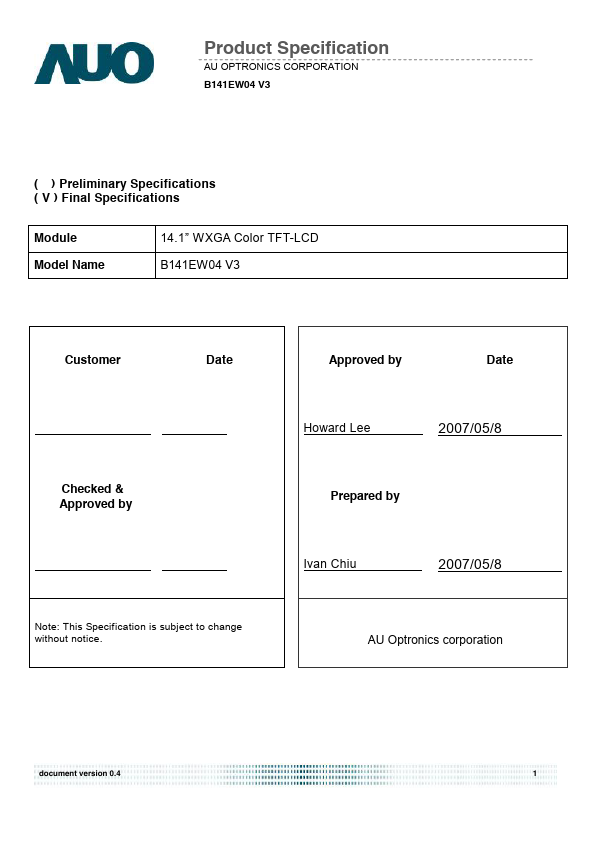 B141EW04-V3 Description