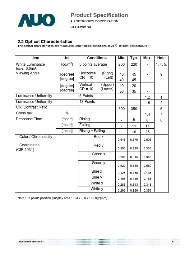 B141EW04-V5 Description