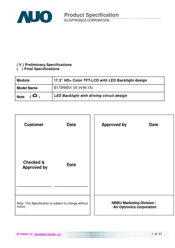 B173RW01-V0 Description