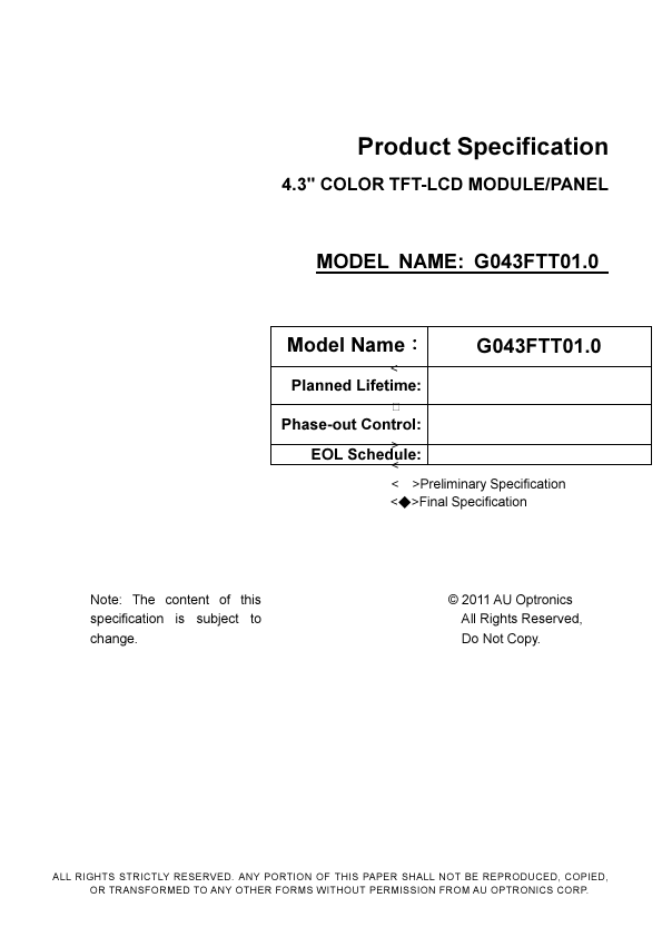 | Datasheet | G043FTT01.0-AUO.pdf |