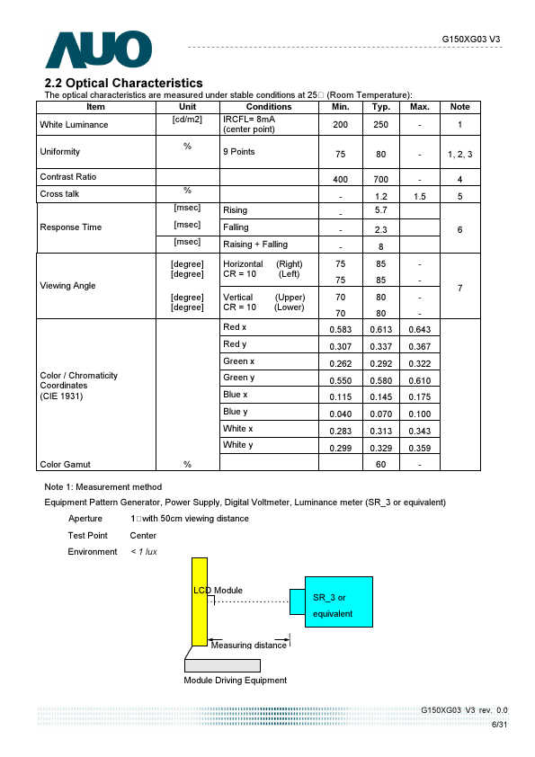 G150XG03-V3 Description