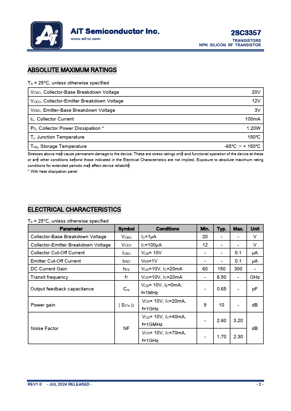 Overview: AiT Semiconductor Inc. www.ait-ic.com 2SC3357 TRANSISTORS NPN SILICON RF.