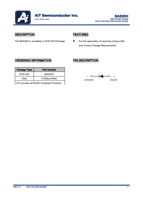 | Datasheet | BAS20H-AiTSemiconductor.pdf |