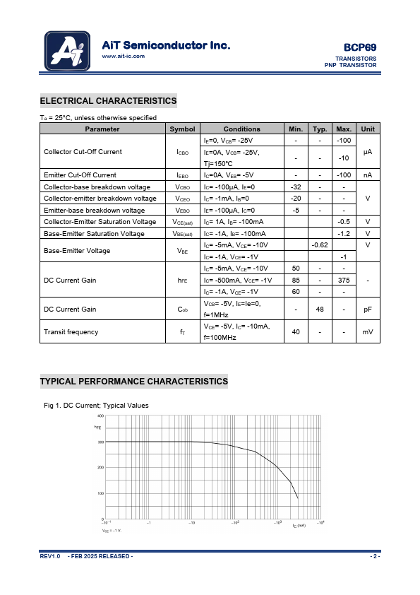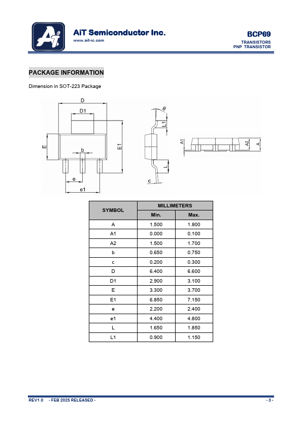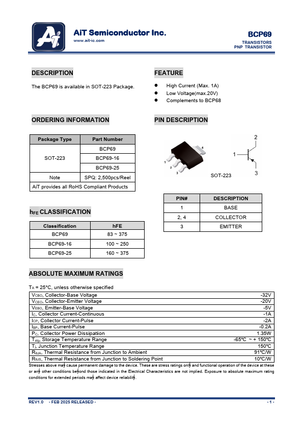 www.ait-ic.com BCP69 TRANSISTORS PNP TRANSISTOR.