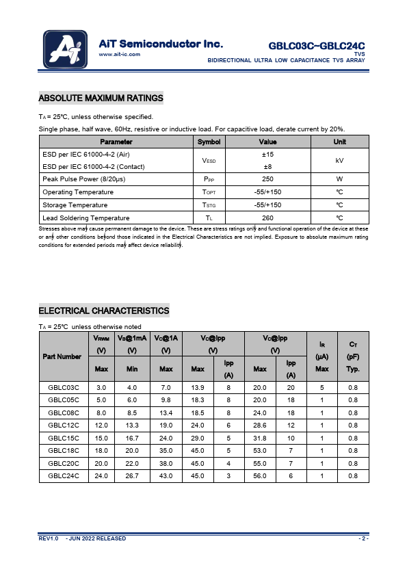 | GBLC20C | BIDIRECTIONAL ULTRA LOW CAPACITANCE TVS ARRAY |