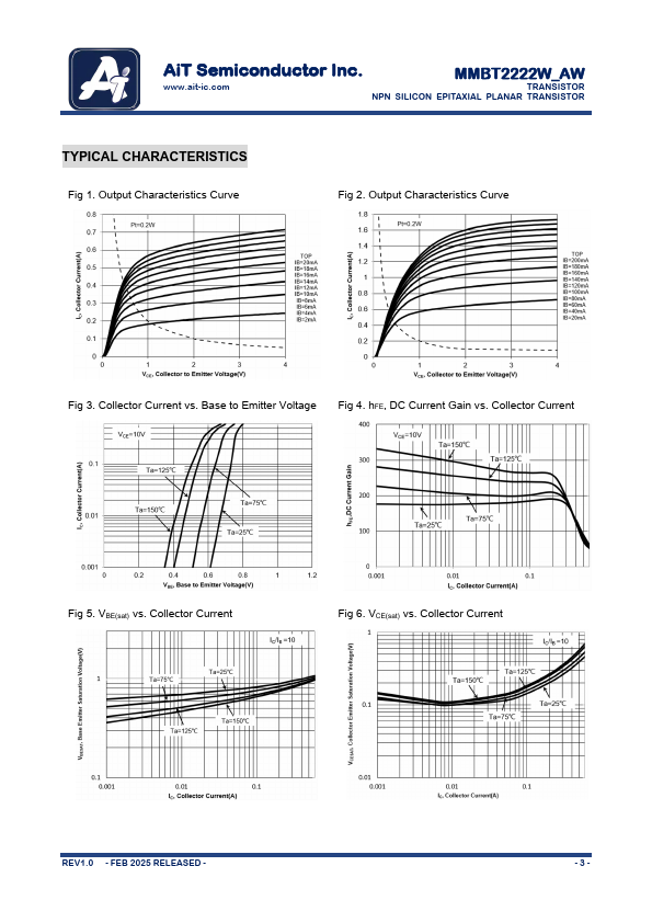 Overview: AiT Semiconductor Inc. MMBT2222W_AW www.ait-ic.com TRANSISTOR NPN SILICON EPITAXIAL PLANAR.