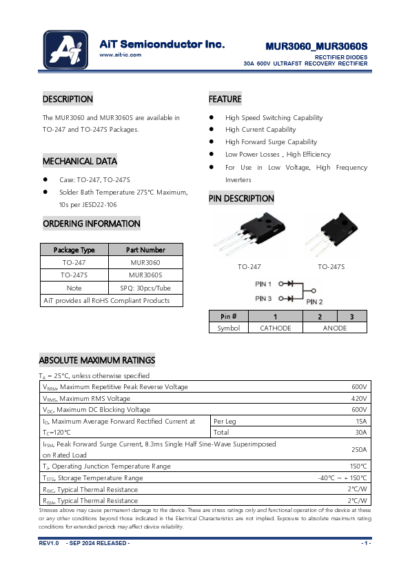 | Datasheet | MUR3060-AiTSemiconductor.pdf |