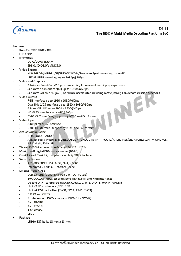 - Allwinner SmartColor2.0 post processing for an excellent display experience