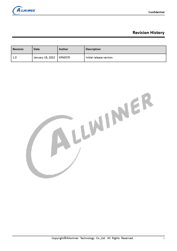 Confidential Revision History Copyright© Allwinner Technology Co.,Ltd. i Confidential Contents The RISC-V Multi-Media Decoding Platform SoC ................................................................................................................i Revision...