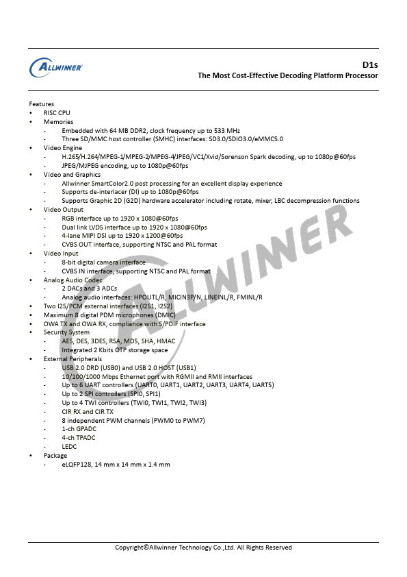 - Allwinner SmartColor2.0 post processing for an excellent display experience