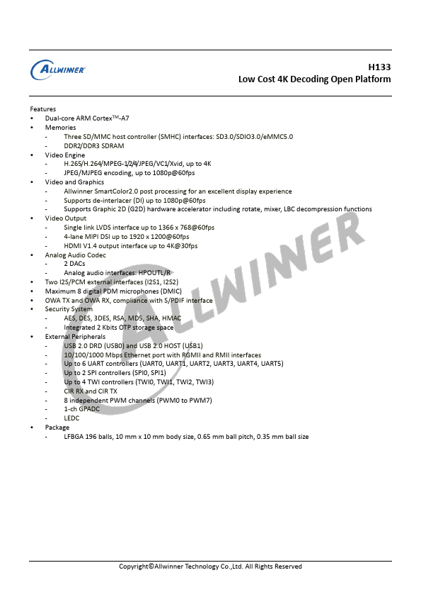 - Allwinner SmartColor2.0 post processing for an excellent display experience