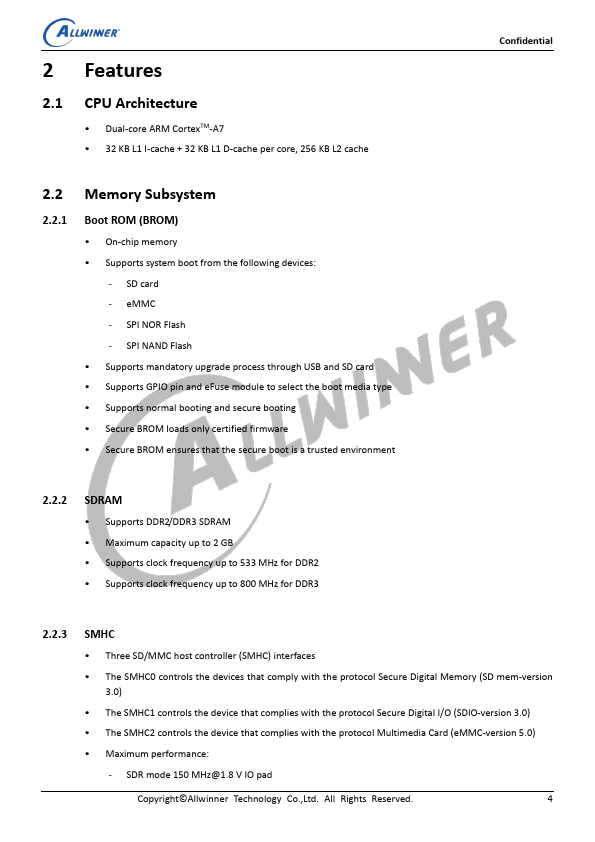 - Three SD/MMC host controller (SMHC) interfaces: SD3.0/SDIO3.0/eMMC5.0
