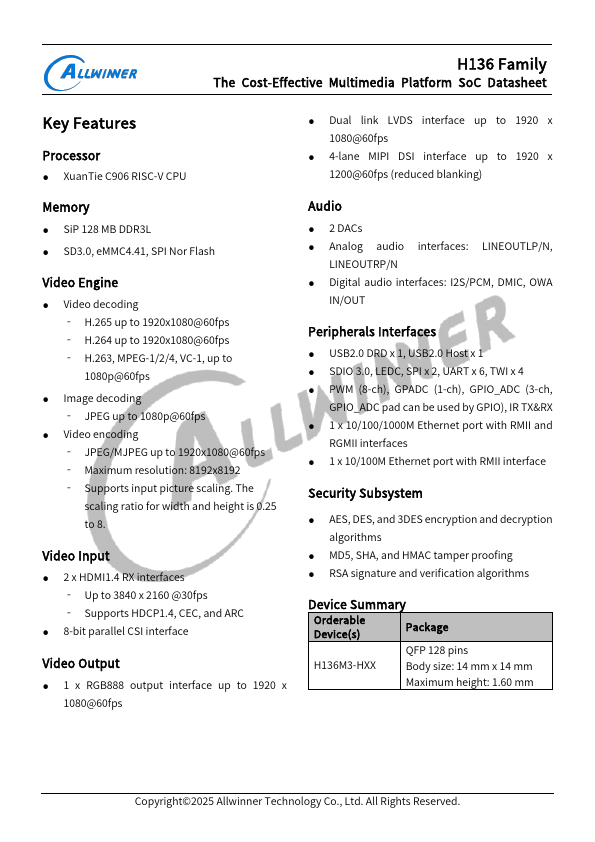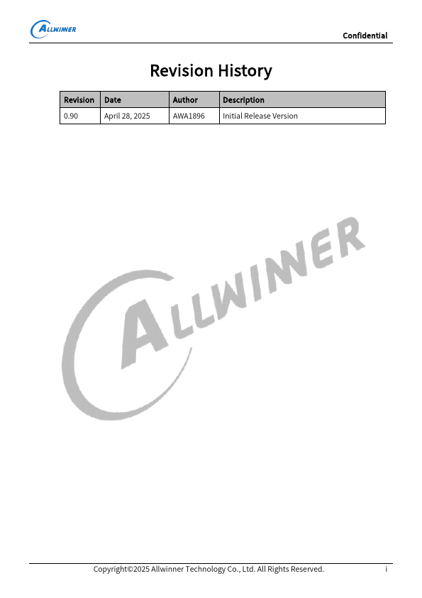 Initial Release Version Confidential Copyright©2025 Allwinner Technology Co., Ltd.