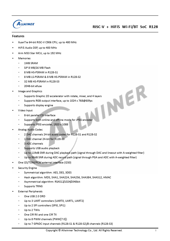 RISC-V + HiFi5 Wi-Fi/BT SoC R128.