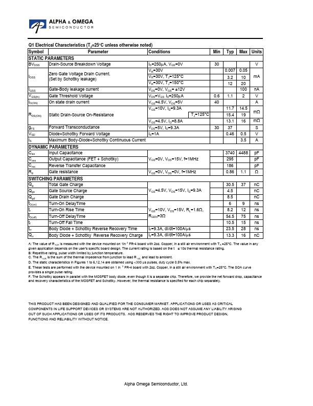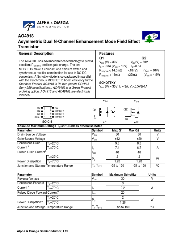 | AO4918A | Dual N-Channel Enhancement Mode Field Effect Transistor |