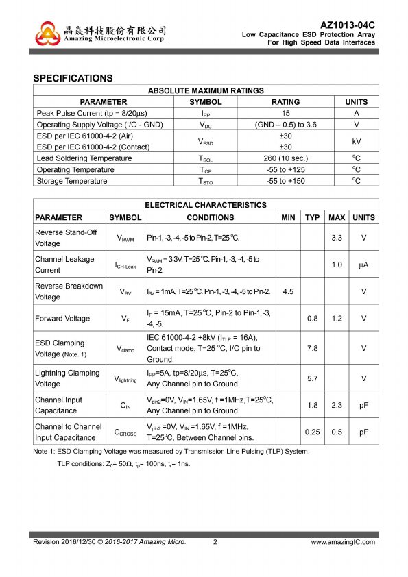 Low Capacitance ESD Protection Array For High Speed Data Interfaces |