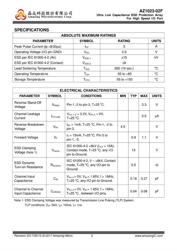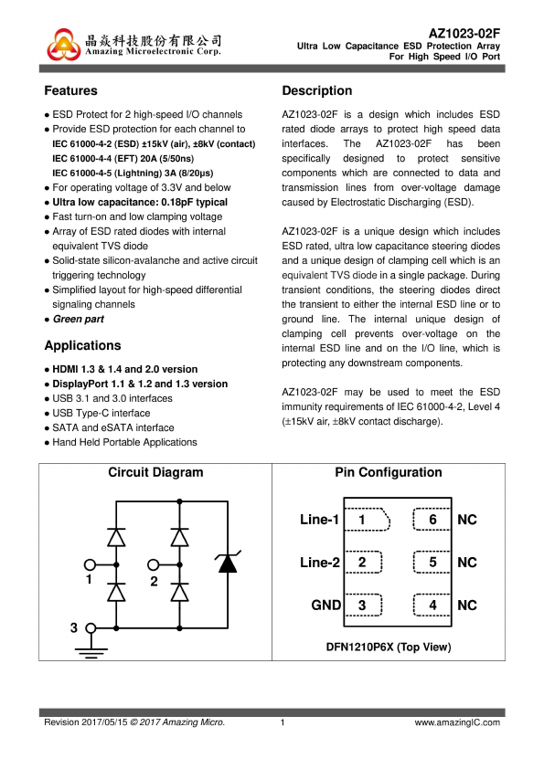 Low Capacitance ESD Protection Array For High Speed Data Interfaces |