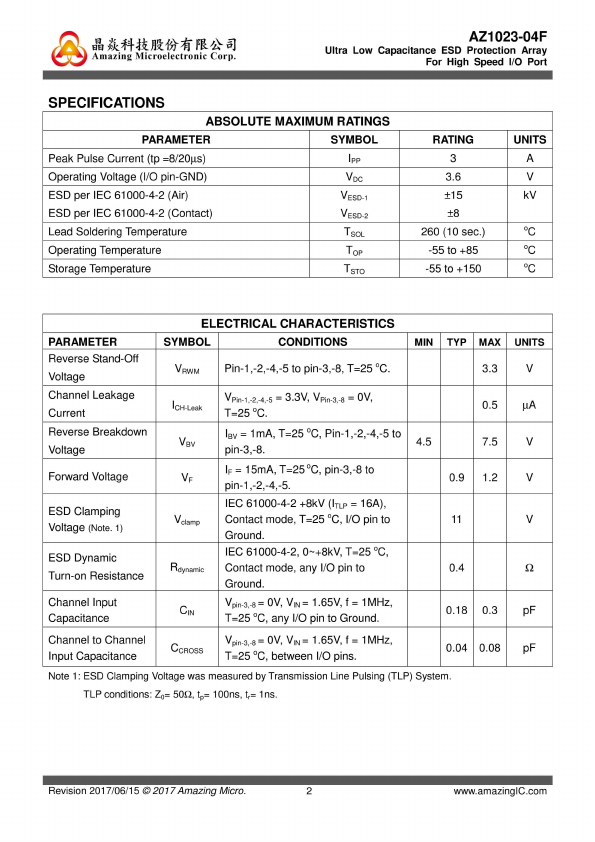 Ultra Low Capacitance ESD Protection Array For High Speed I/O Port |