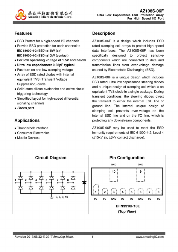 Ultra Low Capacitance ESD Protection Array For High Speed I/O Port |