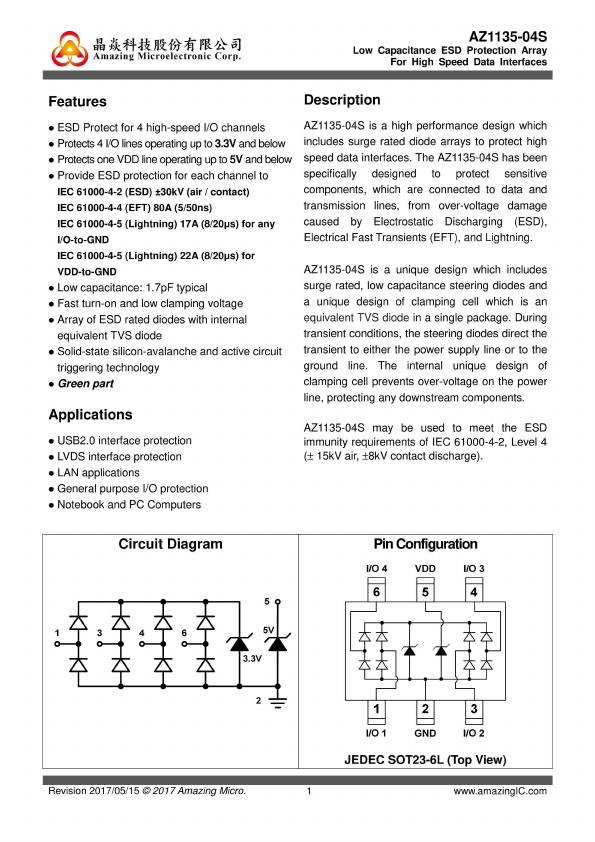 Low Capacitance ESD Protection Array For High Speed Data Interfaces |