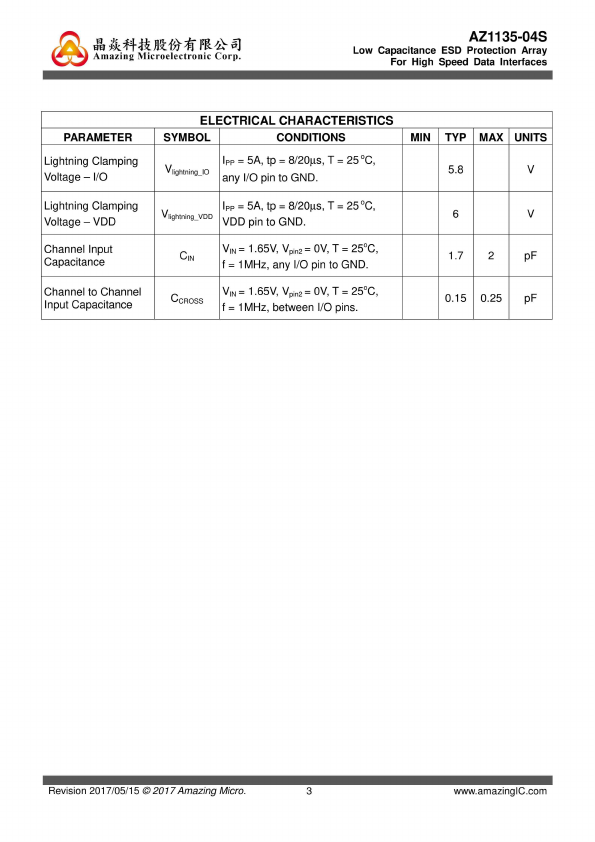 Low Capacitance ESD Protection Array For High Speed Data Interface |