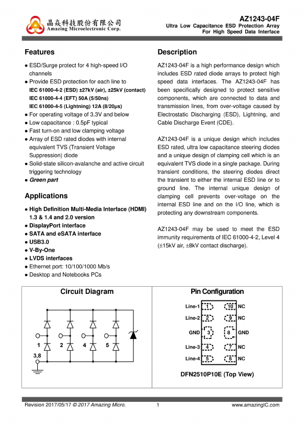 Low Capacitance ESD Protection Array For High-Speed Data Interface |