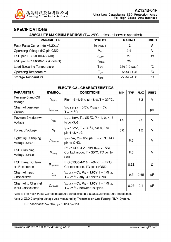 Low Capacitance ESD Protection Array For High Speed Data Interfaces |