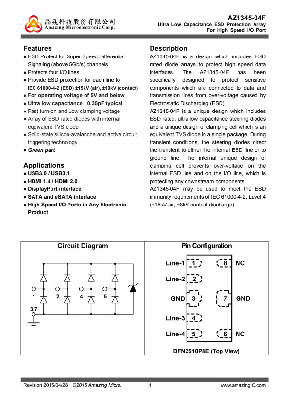 Low Capacitance ESD Protection Array For High Speed Data Interfaces |
