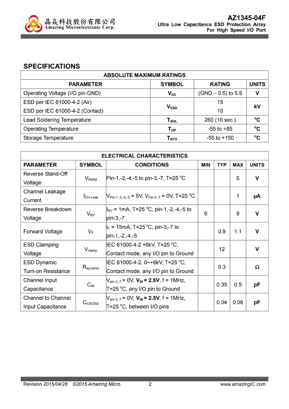 Ultra Low Capacitance ESD Protection Array For High Speed I/O Port |
