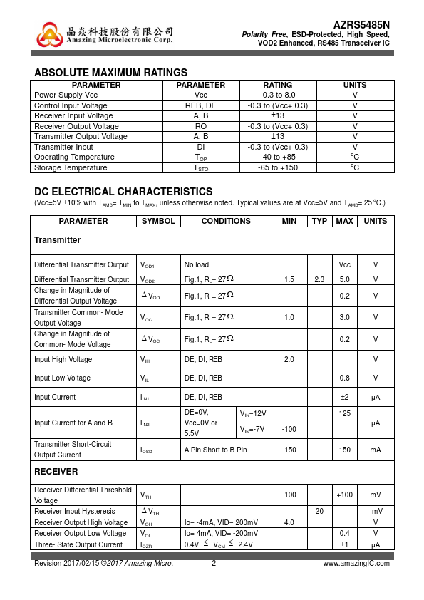 - Meet the Requirements of the EIA/TIA-485 Standards with 5V Power Supply