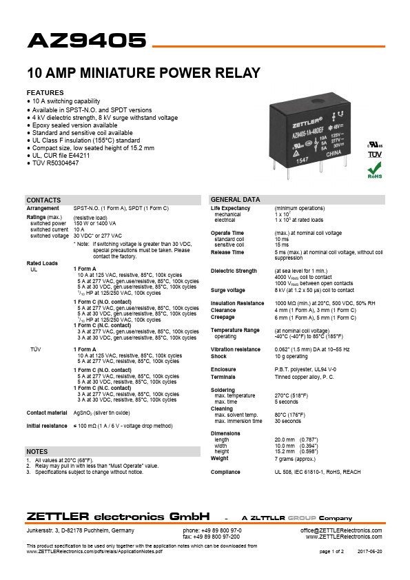 AZ9405 10 AMP MINIATURE POWER RELAY.