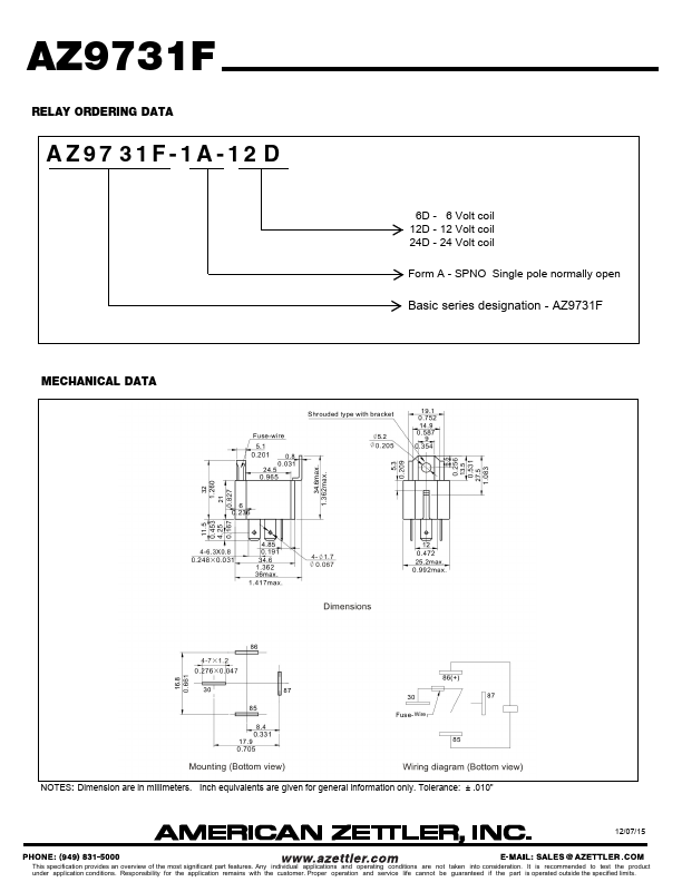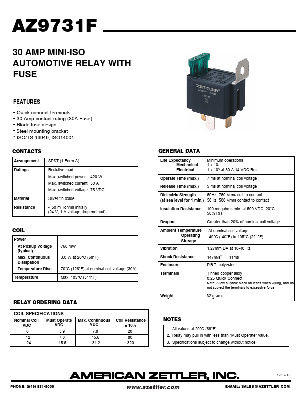 AZ9731F 30 AMP MINI-ISO AUTOMOTIVE RELAY WITH FUSE.