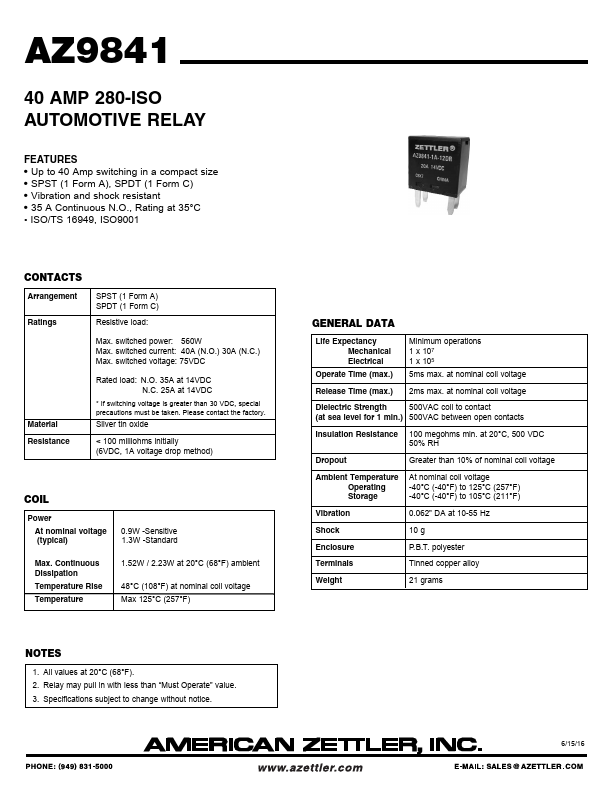 AZ9841 40 AMP 280-ISO AUTOMOTIVE RELAY.