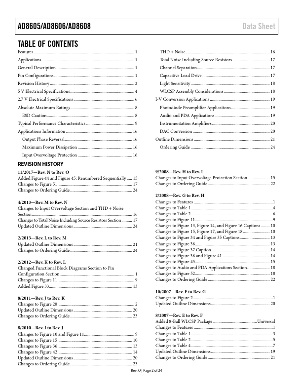 This datasheet PDF includes multiple part numbers: AD8608, AD8605. Please refer to the document for exact specifications by model. |
