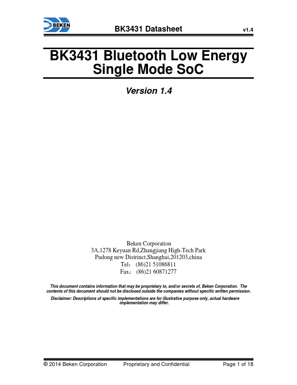 - Bluetooth® SIG Bluetooth Low Energy Single-Mode (BLE) compliant