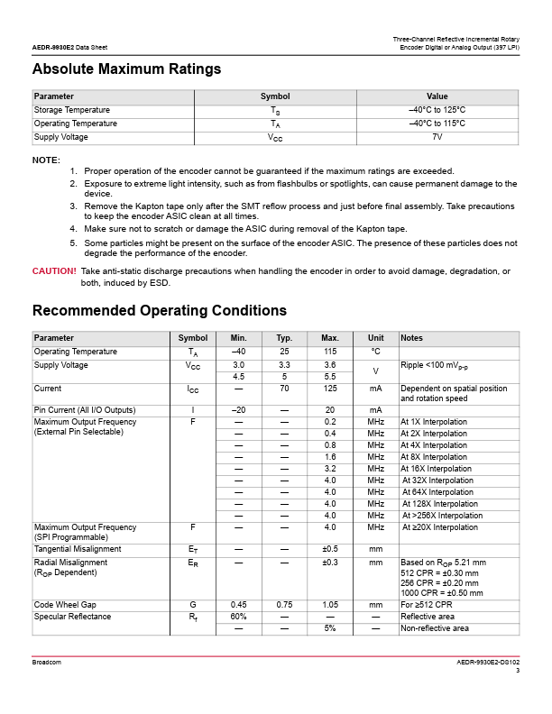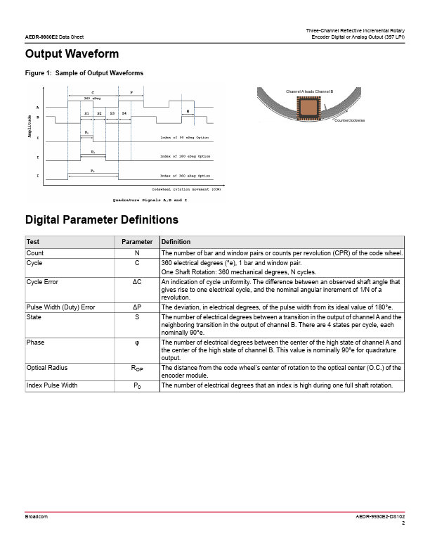 The Broadcom® AEDR-9930E2 is a three-channel reflective optical encoder.