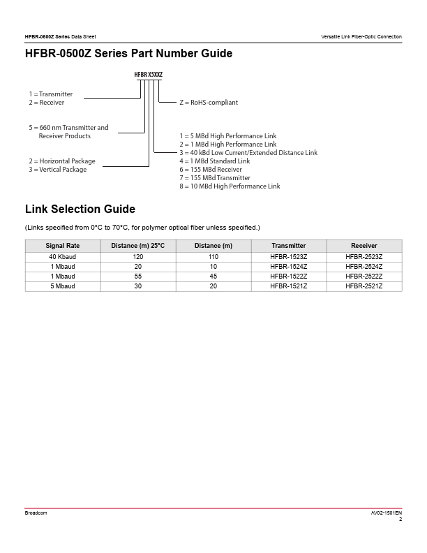The HFBR-0500Z series includes transmitters, receivers, connectors, and cables specified for easy design.