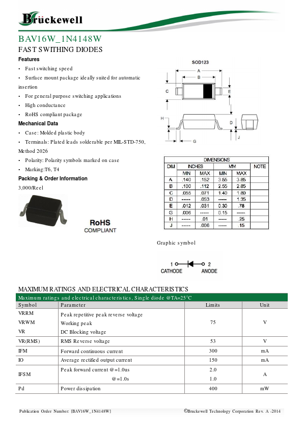 | Datasheet | 1N4148W-Bruckewell.pdf |