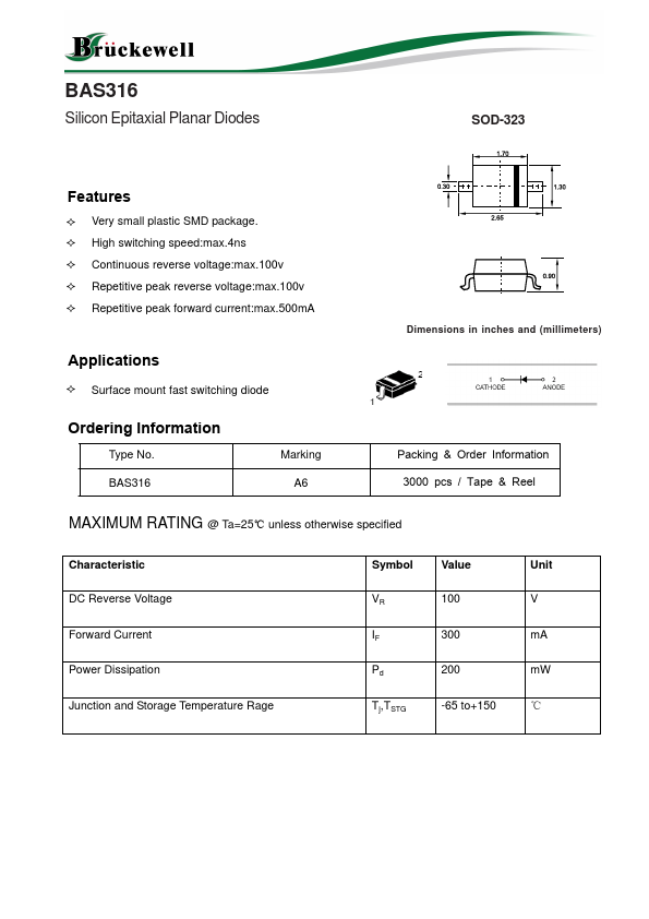 BAS316 Silicon Epitaxial Planar Diodes SOD-323.
