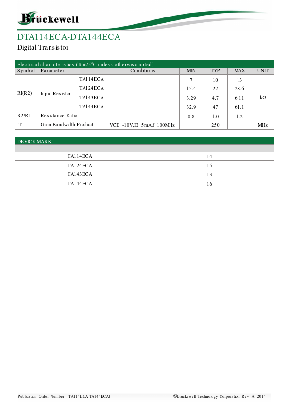 | Datasheet | DTA114ECA-Bruckewell.pdf |