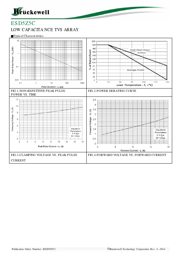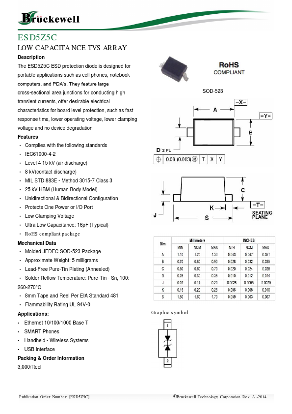 The ESD5Z5C ESD protection diode is designed for portable applications such as cell phones, notebook puters, and PDAʼs.
