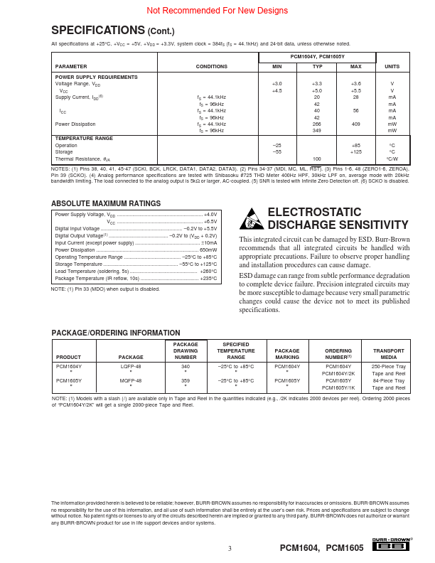 Not Recommended For New Designs