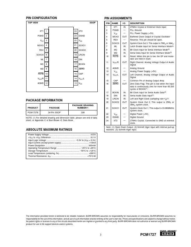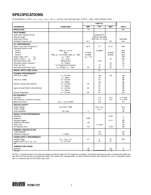 The PCM1727 is a complete low cost stereo audio digital-to-analog converter (DAC) with a dual phaselocked loop (PLL) circuit included. PLL-1 derives a fixed 33.