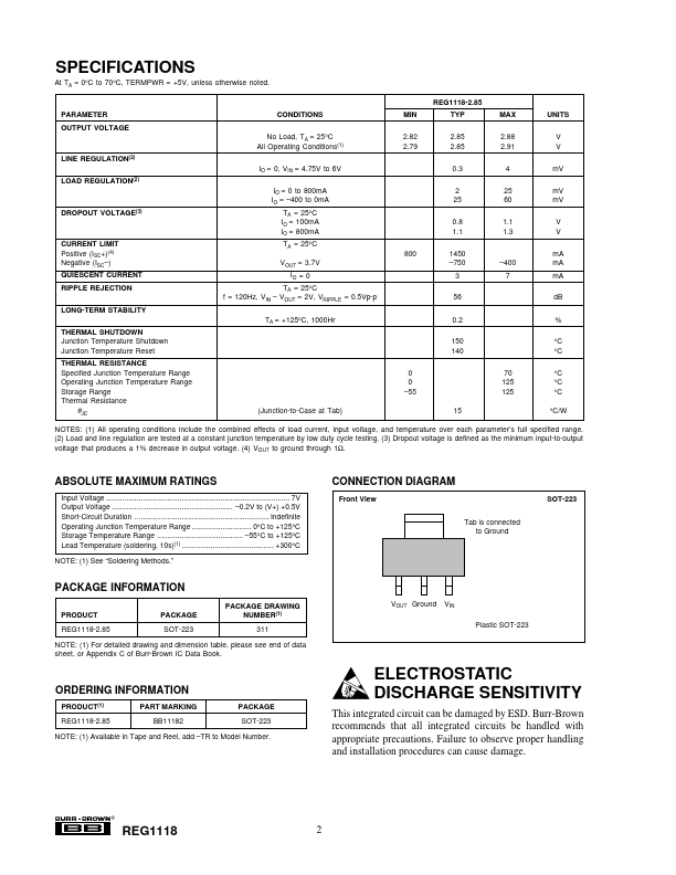 The REG1118-2.85 is a three-terminal voltage regulators capable of sourcing up to 800mA and sinking up to 400mA.