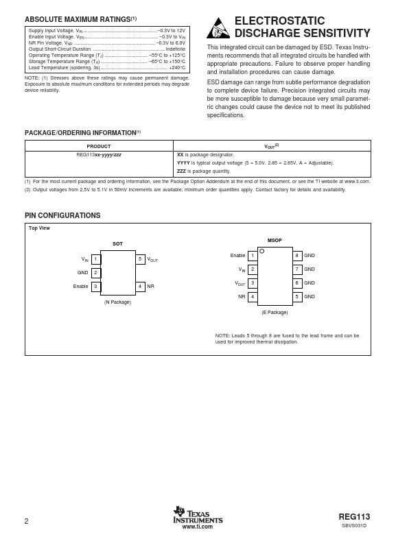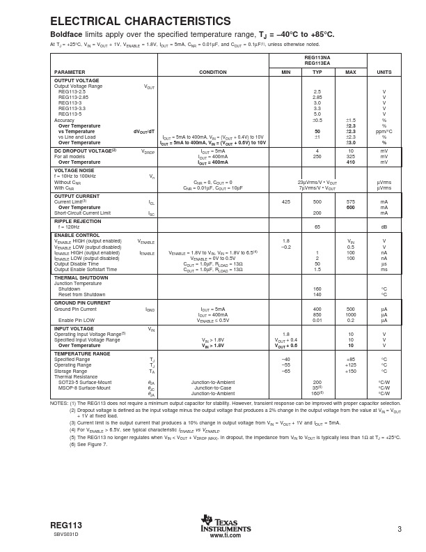 The REG113 is a family of low-noise, low-dropout linear regulators with low ground pin current.