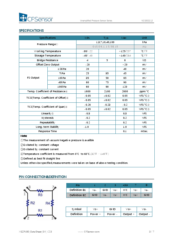 | Description | Unamplified Pressure Sensor |