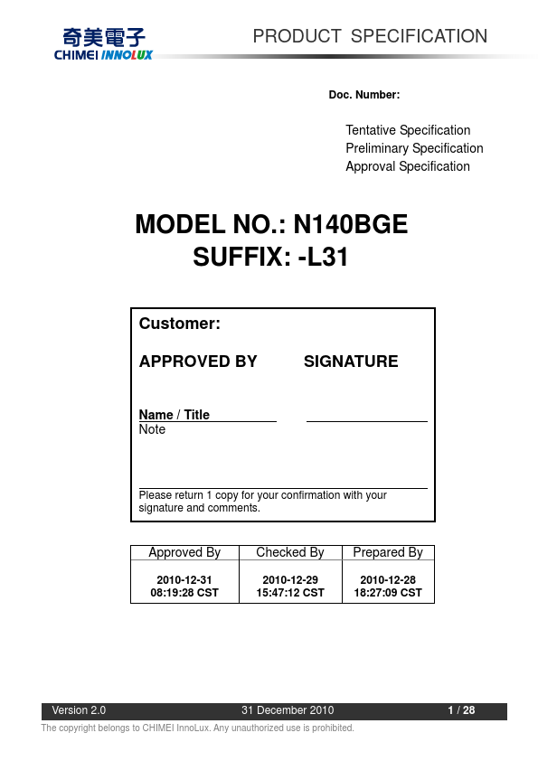 Download N140BGE-L31 Datasheet PDF