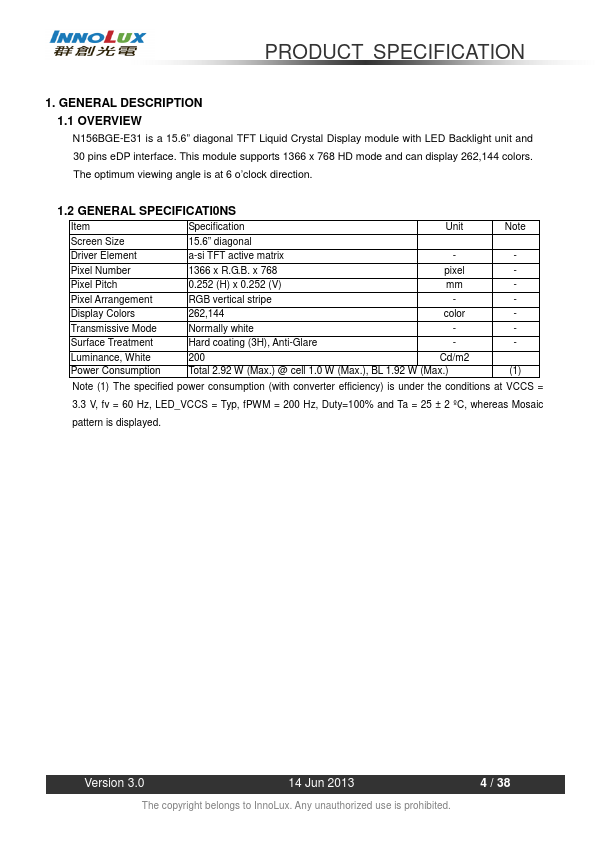 N156BGE-E31 page 2 N156BGE-E31 page 3