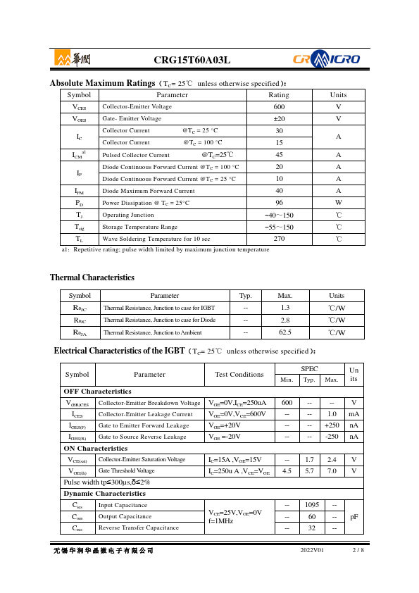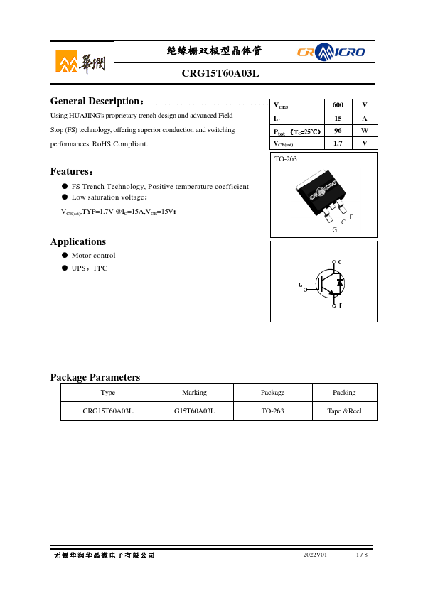 : Using HUAJING's proprietary trench design and advanced Field Stop (FS) technology, offering superior conduction and switching performances.