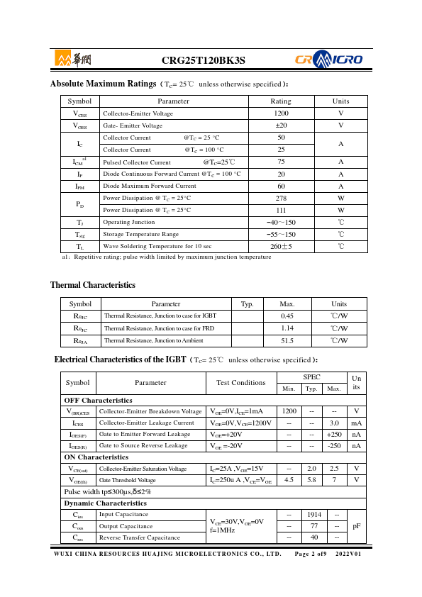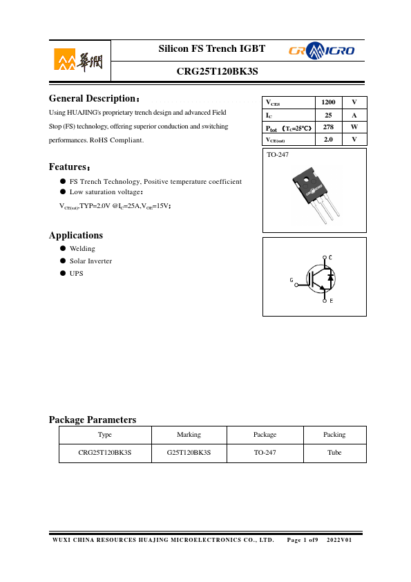 : Using HUAJING's proprietary trench design and advanced Field Stop (FS) technology, offering superior conduction and switching performances.